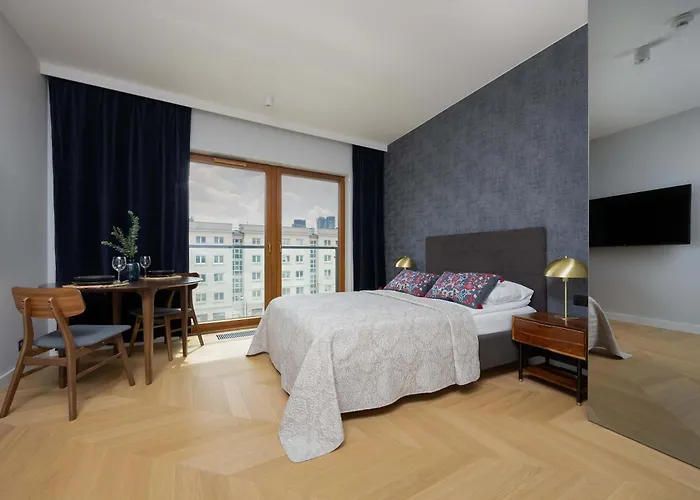 Modern Studio In Wola With Air Conditioning By Noclegi Renters includes a kitchenette featuring an oven and a dishwasher. Modern Studio In Wola With Air Conditioning By Noclegi Renters is situated 2.1 km from Warszawa Główna train station and just moments from Bellottiego 02 bus station.